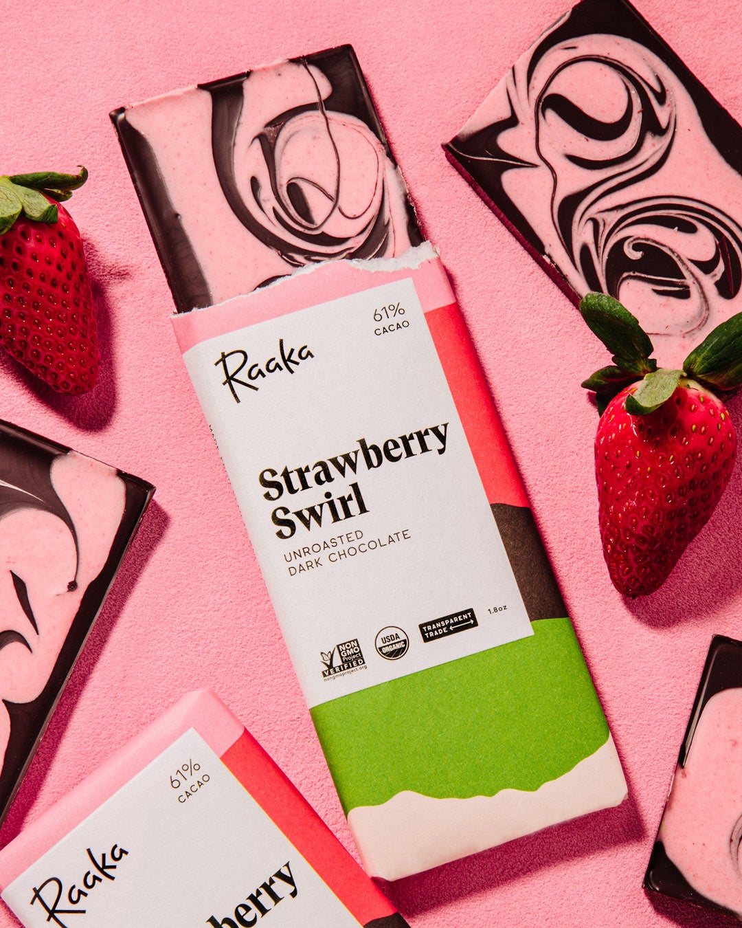 5. Raaka Chocolate Strawberry Swirl Single Bar
