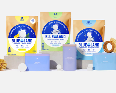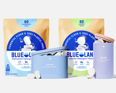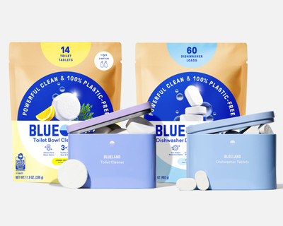 The Clean Suite does it all, really. Meet the complete set of better basics designed to keep our home and planet clean. Take on dirty dishes, hands, and laundry without any of the plastic waste or worry. The Clean Suite has all your Blueland favorites in one kit. Made with plant-based and planet-friendly ingredients, effective and independently tested to perform alongside major brands.