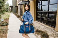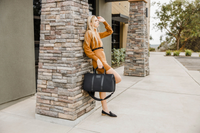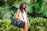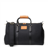 This sleek duffel bag works for weekend trips or the gym. It features a waterproof back pocket for files, laptop or a tablet, a waterproof zippered shoe compartment and a zippered interior pocket. It has an adjustable, padded shoulder strap. It's made of ballistic nylon and Italian leather accents, and measures 19.5" (L) x 11.5" (H) x 10.5" (D). Includes personalization, recipient's choice of bag color and monogram text.