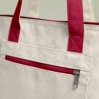 - Pocket size: 9 1/2"W x 9"H with 8 1/2"W zipper - 24 1/2" self-fabric handles - 8 1/2" handle drop - Large main compartment with zipper closure - Front zipper pocket - 100% Cotton canvas