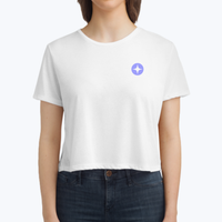 Designed with a relaxed, flowy fit and tailored sleeves, this cropped tee delivers effortless style with a modest silhouette. Crafted from a soft, stretchy polyester/viscose blend and finished with a tear-away label, it offers all-day comfort and an easy, polished look while featuring your logo. Please note: All branded items are final sale.