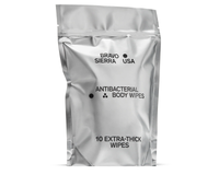 Ten individually-wrapped head-to-toe wipes to provide a quick and effective clean, eliminating sweat, dirt, and bacteria with a single swipe - when showers are not an option. Made with extra-thick biodegradable material that won’t fall apart when dealing with feet, knees, and other rough parts.