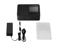 Print vibrant, professional-like photos off a memory card, USB flash drive, or computer connection with the ultra-compact Canon SELPHY CP1500, in a sleek black design. At approximately 7 x 5 x 2", the SELPHY is a portable photo printer that supports four different paper sizes, including small adhesive stickers.