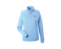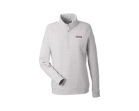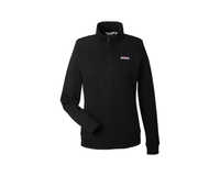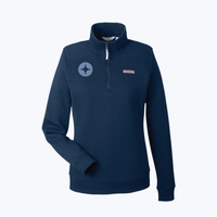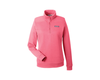 The Vineyard Vines Women's Collegiate Shep Shirt is made from 100% cotton in a classic fit with a cozy quarter-zip design. It features a self-fabric collar, contrast whale grosgrain zipper pull, and signature shoulder and back panel detailing. Ribbed cuffs and hem add structure, while pink woven vineyard vines® labels on the chest and back collar finish the look with iconic flair.
