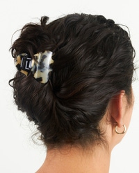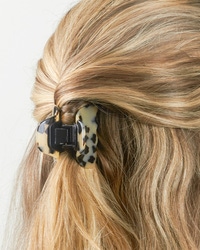 A two-piece handcrafted clip set that holds hair in place without kinks. Crown Affair created The Clips with versatility and longevity top of mind: Handcrafted in France in timeless silhouettes and sized to perfection for as many hair types and as many different uses as possible, they are elevated, classic, and versatile, no matter your hair type. With gently rounded tips, a sloping curve, and an added set of smaller hidden teeth for reliable hold on any hair type, The Clips are made from Italian plant-based cellulose acetate; a sturdy, flexible, and eco-friendly material.