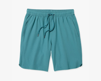 - Material: 88% recycled polyester, 12% spandex - Inseam: 6" - Liner: Built-in BreezeKnit™ liner - Stretch: 4-way stretch fabric - Odor Resistance: Naturally odor resistant - Waist: Drawstring waist - Pockets: Sleek side pockets with advanced water-draining technology - Back Pocket: Hidden zipper back pocket with keyring - Leg Design: Scalloped leg - Fabric Treatment: Durable water repellent (DWR) finish for quick-drying performance