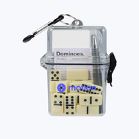With your company logo, the On-The-Go Dominoes Set is the perfect game to help with passing the time while traveling. The small size makes it easy to pack in any bag or pocket. This set includes 28-piece dominoes, gel ink pen, game scoring cards and instructions, all packed in a transparent carrying case with attached carabiner. Please note: All branded items are final sale.