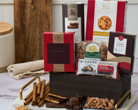 - Chocolate Chip Cookies by Dulion - 4 oz. - Chocolate Wafer Cookies by Fusion Gourmet - 6 oz. - Chocolate Caramel Grahams by Annalie's Chocolates - 2.6 oz. - Chocolate Caramels by Annalie's Chocolates - 6 pc - 4.4 oz. - Dark Chocolate Sea Salt Caramels by Morley Sanders - 1.5 oz. - Chocolate Covered Berry Mix by Stewart & Jasper Orchards - 4 oz. - Wooden Crate