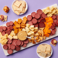 Three kinds of savory summer sausage, five types of creamy cheeses, Hickory Farm's most loved mustard, plus two kinds of crispy crackers all add up to more taste combinations than they can count! The fun Easter box adds a special touch.
