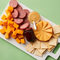 - 7 oz Signature Beef Summer Sausage - 4 oz Smoked Gouda Blend - 4 oz Sharp Cheddar Blend - 1.25 oz Sweet Hot Mustard - 1 oz Golden Toasted Crackers - 5 oz Jelly Beans - Allergen Information: The product contains milk, wheat, and soy. Produced in a facility that also processes eggs, peanuts, and pecans.