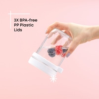 - Set of 3 Glass Jars - Capacity: 16 oz - Lead Free Glass - BPA-Free Plastic Screw-On Lids - Three Stainless Steel Spoons - Silicone Spoon Holders - Fridge and Freezer Safe - Dishwasher Safe - Suggested to Wash Before First Use