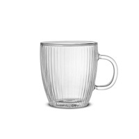 - Set of 2 4 Double Wall Glass Mugs - Capacity: 13.5 oz - Ribbed, Elegant Design - Lead-Free Borosilicate Glass - Dishwasher, Microwave, and Freezer Safe - Suggested to Wash Before First Use