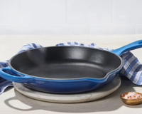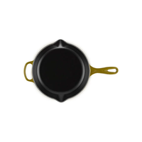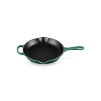 The enameled cast iron Signature Skillet is a versatile kitchen essential for searing, sauteing, stir-frying, and more. The interior surface is finished with a black satin enamel that eliminates the need for the traditional seasoning and maintenance of raw cast iron. Specially formulated for higher surface temperature cooking, the enamel develops a natural patina over time making it virtually non-stick and easy to clean.