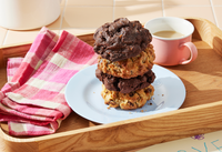Dark chocolate cookie dough is packed with soft, smooth peanut butter chips to create the perfect cookie confection.