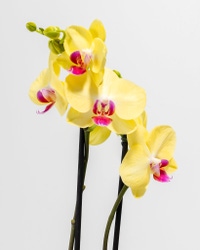 The Miraflore Moth Orchid gets your attention with its bright yellow petals and blows you a kiss with its violet-red lips! This gorgeous orchid boasts not one, but TWO stunning flower spikes ensuring it always steals the show. The best part is, these blooms can last up to 3 months!