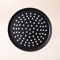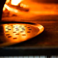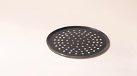 A combination of the best qualities of Stainless Clad and cast iron, this Carbon Steel is engineered to perform at extreme temperatures, making it the perfect material for high-heat pizza firing. With 86 perforations along its cooking surface, it improves airflow and browning on the bottom of your pie, so you can easily achieve a crispy, brick-oven-like crust, even in a home oven. To craft this piece, French artisans stamp Carbon Steel into a thin disc that’s half the weight of cast iron but every bit as durable. It has natural non stick properties, so your perfectly crafted crust will slide off the pan instead of sticking and tearing. Measures 12.6".
