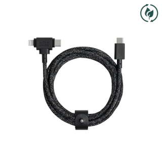 The ultimate cable you've been searching for is finally here. Solve all your power needs with a faster, more sustainable, more durable cable. Designed for superior convenience and versatility, this unique 2-in-1 connector houses both USB-C and Lightning connectors in a single head and is strong enough to withstand the most active all-day, all-device use.