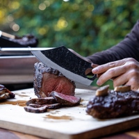 The Loki Knife brings bold design and serious performance to your kitchen, turning everyday prep into something far more satisfying. Its ultra-sharp blade and pronounced curve make slicing, dicing, and chopping feel effortless while staying perfectly balanced in your hand. A distinctive finger hole enhances grip and control, giving you precision that stands out from ordinary knives. Finished with a fortified wooden handle, it’s a striking tool built for everything from home cooking to backyard BBQs.