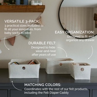 These Felt Drawer Organizers are designed to bring effortless order to your nursery (and beyond), so you can focus on what matters most. With 3 soft, structured felt bins in versatile sizes, these organizers help you control the chaos — whether you’re a Type A mom who loves a system or a Type B mom who just wants things to stay put.
