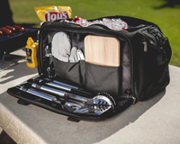 The ultimate companion for grill masters on the move. The NCAA BBQ Kit Grill Set & Cooler combines grilling essentials with on-the-go convenience. It features a heat-sealed interior liner that holds up to 46 twelve-ounce cans (18" x 7" x 10"). Carry it your way using the two handles or the adjustable shoulder strap. With two zippered pockets and one flat pocket for added storage, it’s a smart and practical gift for any outdoor cook.