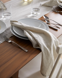 Expertly crafted from the finest European flax, these linen napkins are equally soft and functional. The classic design and texture makes these napkins well suited for formal gatherings or casual nights at home. Set includes 4 napkins, each measuring 20" x 20". Woven from 100% European flax, 150-gsm linen. Free of harmful chemicals and toxins.