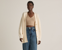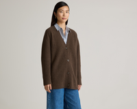 Quince took your favorite Grade-A Mongolian cashmere boyfriend sweater and made it extra. With more of an oversized fit, it’s even roomier than a classic cardigan fit. So comfy cozy with fisherman rib detailing premium coastal vibes. Consider sizing down for a little less volume.