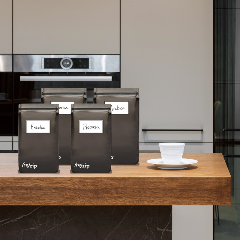 (re)zip Reusable Airtight Coffee/Tea Storage Set is the perfect solution for keeping your tea, coffee beans and grounds fresh and flavorful. These bags provide an airtight seal, shielding your tea and coffee from air and moisture, and are ideal for refrigerator or freezer storage. Includes (1) 6 cup bag and (1) 8 cup bag.