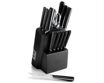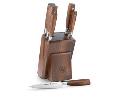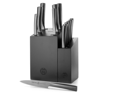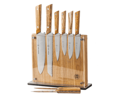 A true testament to strength, the Atlas Knife Set does the heavy lifting in your kitchen—empowering you to achieve heroic feats of culinary mastery. Expertly crafted from premium German stainless steel, each knife in this professional cutlery set is designed for lasting sharpness, balance, and durability. Thoughtfully made for both seasoned chefs and beginners, this complete kitchen knife block set provides every essential blade you need to chop, slice, carve, and prep with confidence.