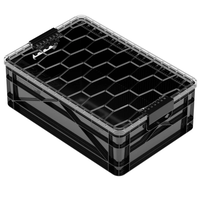- Dimensions: 16.98" L x 10.96" W x 5.88" H (Interior), 19.93" L x 12.76" W x 7.23" H (Exterior) - Weight Capacity: Supports 1000+ lbs - Material: Polypropylene - Divider Slots: 41 customizable slots - Stackable with or without lids; compatible with half or full milk crates - Durability: Resists cracks and dents - Origin: Designed and made in the USA