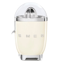 Making fresh-squeezed orange juice, grapefruit juice, or lemonade is a delight with the stylish SMEG electric juicer. Just hold the halved fruit on the reamer and the powerful 80W motor kicks in, delivering juice directly to your glass through a drip-free spout.
