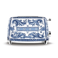 - Two extra-wide slots - Six browning levels offer precise control of browning - Self-centering racks hold toast upright for even browning - Backlit chrome knob with four functions: Reheat, Defrost, Cancel, Bagel - Removable stainless-steel crumb tray - Authentic Dolce & Gabbana product - Dimensions: 12 1/4" x 7 3/4" x 7 3/4" high; 5 lb. 4 oz. Slot width: 1 1/4". 950W - Steel with powder-coated enamel finish that resists scratches, stains, and corrosion - Anti-slip feet - Built-in cord wrap for safety