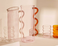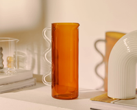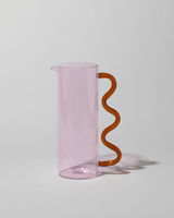 A borosilicate glass pitcher, for pouring water, juice, watering plants, holding flowers, or any other use you can think of. Pitcher holds 1.4L and measures 10"H x 6"W x 3.75"D. Recipient's choice of color.