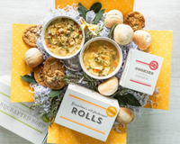 - 4-6 servings of soup, combo, or mac n’ cheese - 6 delicious rolls - 6 delectable cookies - A keepsake ladle to serve up the smiles - Bright and cheerful packaging that’s a treat in itself