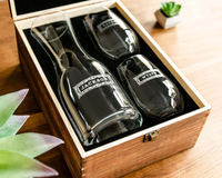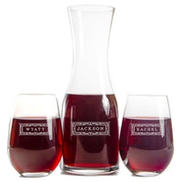 This engraved Wine Decanter set is a truly unique and beautiful gift for the wine drinkers in your life. Embellished with the name of your choice, this set of two 8oz custom wine glasses and personalized 16oz Wine Decanter will be displayed with pride for years to come.