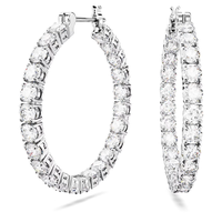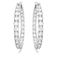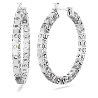 These perfectly formed Matrix hoop earrings are defined by the timeless look of clear round stones and rhodium plated metal. It’s a radiant combination that is essential to any jewelry box. Reach for these hoops to deliver perfect circles of radiance to any outfit. Hoops measure 1.375".