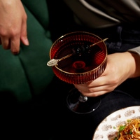 With the stunning clarity of lead-free crystal and a sleek rippled texture, this pair of gold-rimmed stemmed coupes brings understated elegance to any cocktail. This stylish glassware has a subtly contemporary shape that enhances your sipping experience and complements any decor.