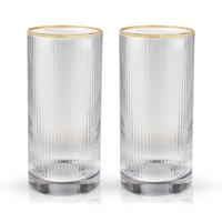 With the stunning clarity of lead-free crystal and a sleek rippled texture, this pair of gold-rimmed highball glasses brings understated elegance to any cocktail. This glassware has a subtly contemporary shape that enhances your sipping experience and complements any decor style.