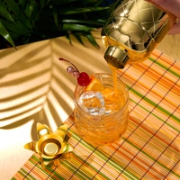 Crafted from stainless steel with a polished gold finish, this eye-catching shaker brings fun and sophistication to your cocktail hour. The three-piece design includes a built-in strainer and a cap shaped like pineapple leaves, ensuring both style and functionality for your favorite drinks.