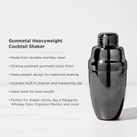 This heavyweight cobbler shaker is a carefully crafted matter of heft, balance, and contour that ensures stability and momentum while shaking drinks. Designed exclusively by professionals for professionals, this substantial black gunmetal-plated tool is the cornerstone of any professional bar set.