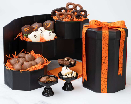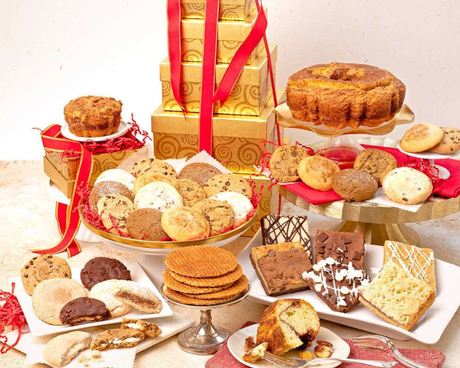 A stunning gift tower wrapped with an elegant purple ribbon and filled with the finest in gourmet bakery treats. In this customer favorite for any occasion. Includes a 4-inch Cinnamon Coffee Cake, 10 Gourmet Cookies in Chocolate Chip, Oatmeal Raisin, Snickerdoodle, Butter Pecan, and Ginger Molasses, 8 Brownies and to top it all off 6 Square Hazelnut Truffles. This gift tower features your logo on the box and a custom notecard. Please note, all branded items are final sale.